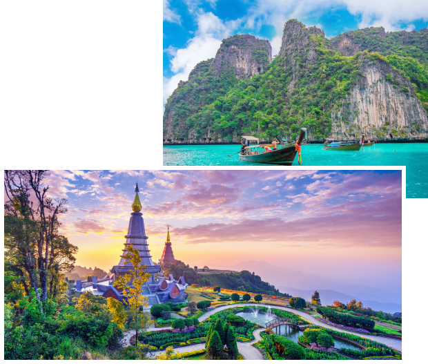 Welcome to the Land of Smiles—Thailand, a captivating destination that seamlessly blends vibrant cultural experiences with breathtaking natural beauty. Begin your Thai odyssey in the bustling metropolis of Bangkok, where the grandeur of the Grand Palace and the serenity of Wat Pho’s reclining Buddha create a juxtaposition of ancient splendour and modern dynamism. Cruise along the Chao Phraya River, navigating through the floating markets and soaking in the city’s eclectic charm.